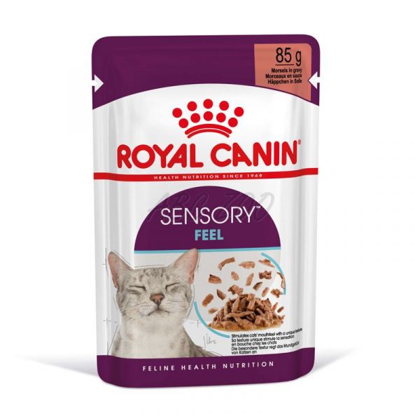 Pohoda vašej mačky sa zlepší, keď je jej strava nielen výživná, ale aj zmyslovo pestrá. Royal Canin® Sensory Feel je vysoko atraktívna receptúra s jedinečnou textúrou navrhnutá tak, aby stimulovala jemné zmysly vašej mačky prostredníctvom pocitu v ústach (pocit, ktorý jedlo stimuluje).