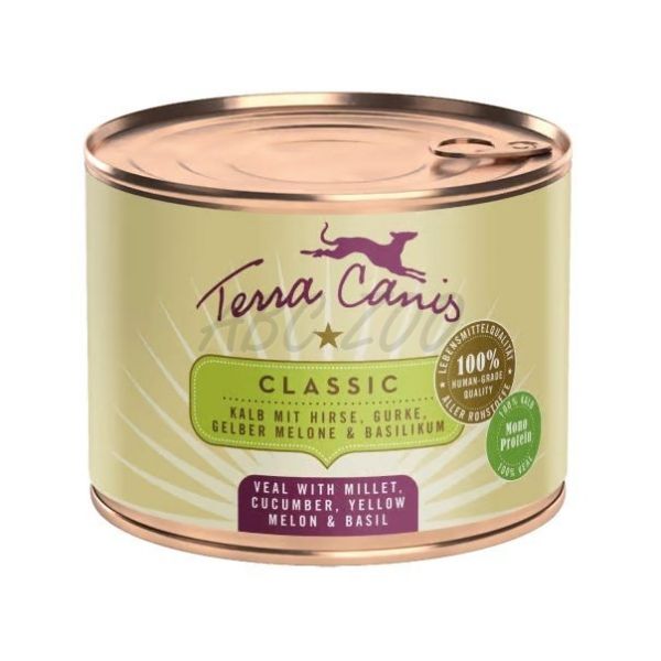 Terra Canis konzervirana hrana iz linije CLASSIC vsebuje velik delež mesa in sveže zelenjave, sadja in zelišč. S hranili bogata, lahka, brezglutenska psevdožita (npr. proso, amarant, naravni riž) so dodana v zelo majhnih količinah, ki so za psa lahko prebavljive (4-10 %). Naravne sestavine (morske alge, mineralna glina, cvetni prah, šipek, andska sol, pivski kvas) zagotavljajo pomembne vitamine, minerale in elemente v sledovih. Olje oljne ogrščice zagotavlja dragocene esencialne maščobne kisline. Vse sestavine so 100-odstotno v skladu s kakovostjo, primerno za ljudi.
