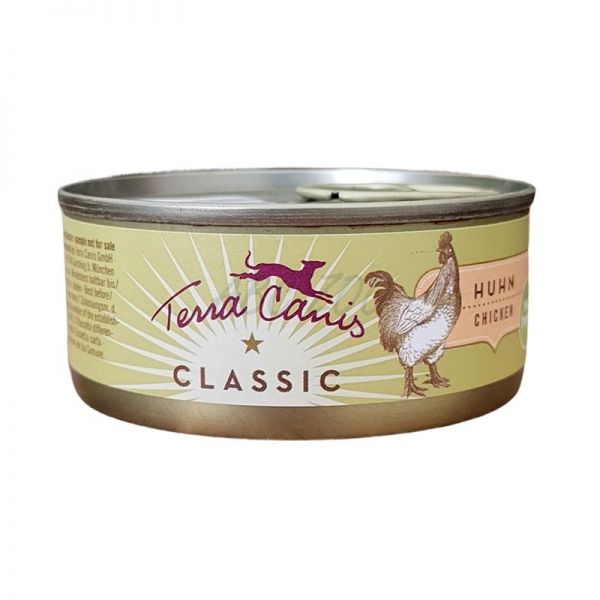 Terra Canis konzervirana hrana iz linije CLASSIC vsebuje velik delež mesa in sveže zelenjave, sadja in zelišč. S hranili bogata, lahka, brezglutenska psevdožita (npr. proso, amarant, naravni riž) so dodana v zelo majhnih količinah, ki so za psa lahko prebavljive (4-10 %). Naravne sestavine (morske alge, mineralna glina, cvetni prah, šipek, andska sol, pivski kvas) zagotavljajo pomembne vitamine, minerale in elemente v sledovih. Olje oljne ogrščice zagotavlja dragocene esencialne maščobne kisline. Vse sestavine so 100-odstotno v skladu s kakovostjo za ljudi.