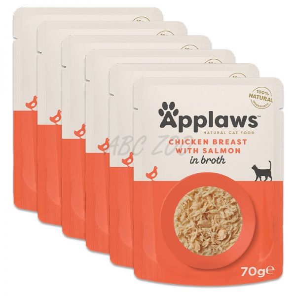 Applaws vrečka za mačke s piščančjimi prsmi in lososom v juhi 6 x 70 g