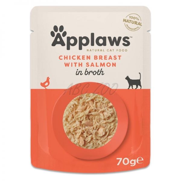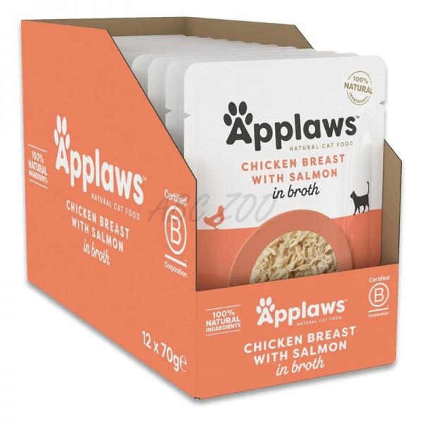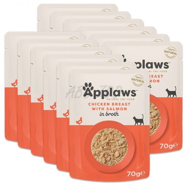 Applaws vrečka za mačke s piščančjimi prsmi in lososom v juhi 12 x 70 g