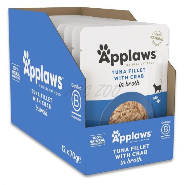 Applaws vrečka za mačke s tunino in rakovico v juhi 12 x 70 g