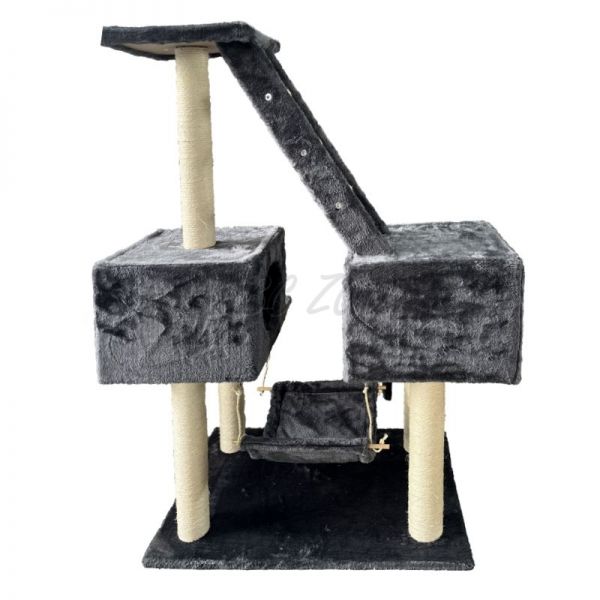 Ta robusten praskalnik ponuja dve prostorni skrivališči, udobno visečo mrežo in dve rampi, ki vaši mački zagotavljajo raznolike možnosti za aktivnost in počitek. Sisalni stebri podpirajo naravni instinkt praskanja in hkrati ščitijo vaše pohištvo pred praskami. Zaradi stabilne konstrukcije in mehkega površja je idealno mesto za vsakodnevni počitek in igrive pustolovščine mačk vseh starosti.