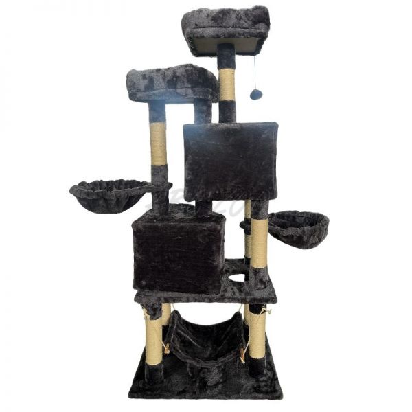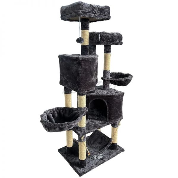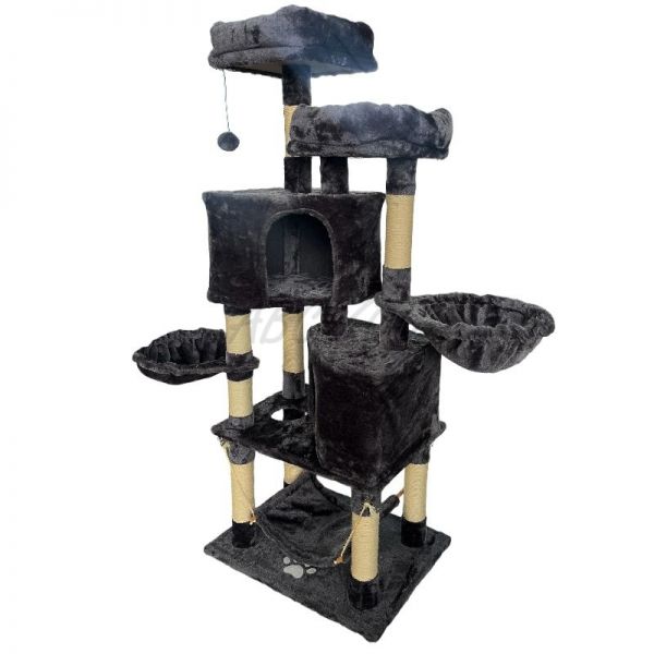 Ta visok mačji praskalnik ponuja kombinacijo počivališč, hišic in praskalnih stebrov, kar omogoča vaši mački, da na igriv način zadosti svojim instinktom. Dve prostorni skrivališči zagotavljata dovolj zasebnosti, medtem ko dvignjena ležišča omogočajo opazovanje okolice z višine. Sisalni stebri služijo kot idealno mesto za brušenje krempljev, s čimer zaščitite svoje pohištvo pred praskami.
