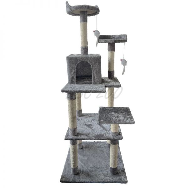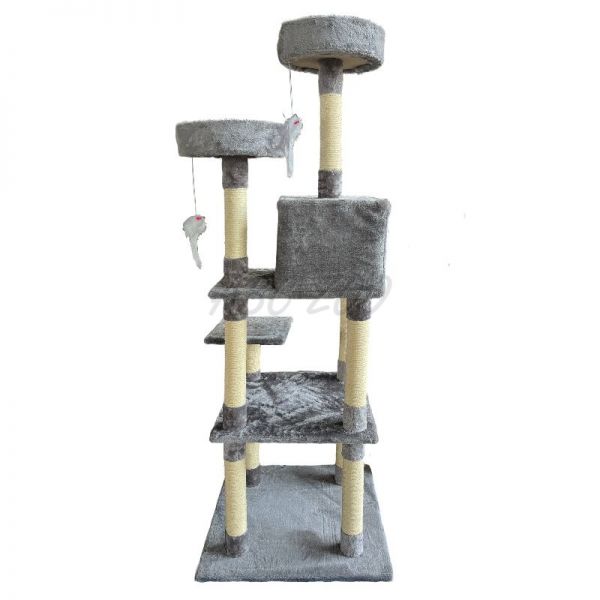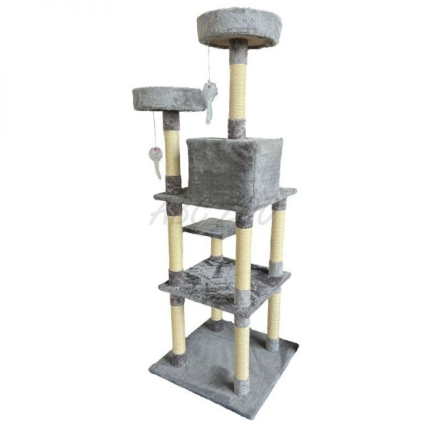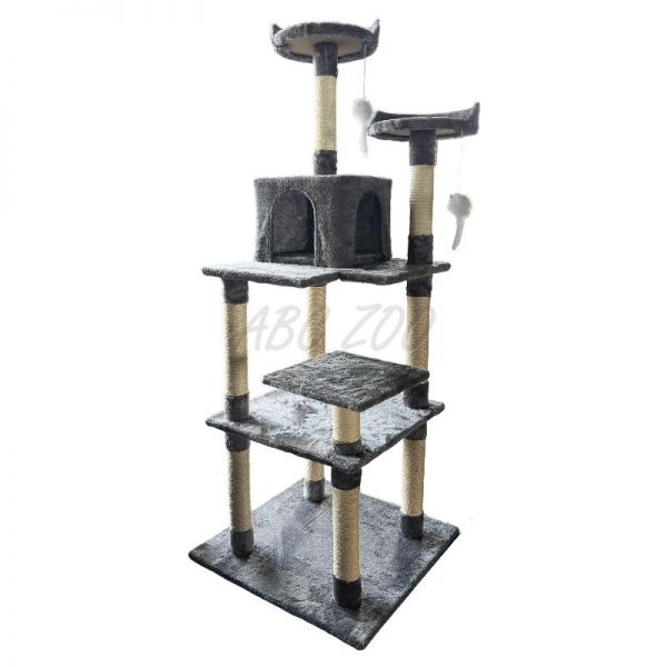To visoko in stabilno praskališče je idealno za domove z eno ali več mačkami, ki potrebujejo prostor za aktivno preživljanje časa in mirno zatočišče. Ponuja kombinacijo različnih elementov, kot so opazovalne točke, hišica, ploščadi in igrače, kar mački zagotavlja maksimalno udobje in zabavo. Sisalni stebri podpirajo naravni instinkt mačk za praskanje, s čimer ščitijo vaše pohištvo pred poškodbami.