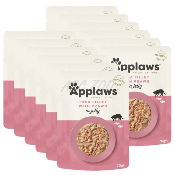 Applaws Pouch za mačke s tuno in kozicami v želeju 12 x 70 g