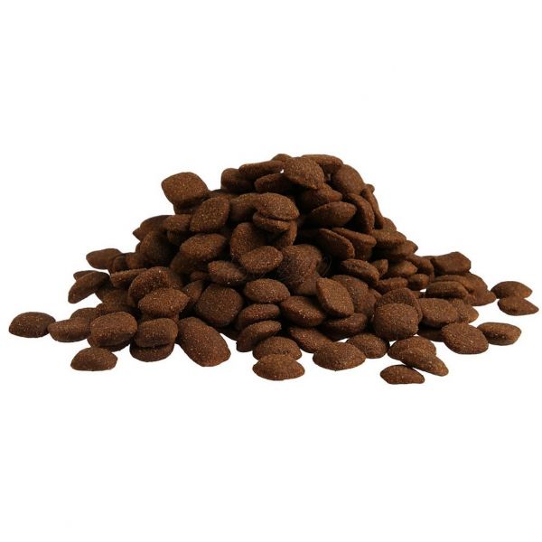 Sestavine: meso (sveže meso /perutnina, svinjina, govedina/ - 22,5 %, sušeno perutninsko meso 23 %, hidrolizirana svinjska jetra 3,5 %), riž, pšenica, perutninska mast, koruza, sladkorni odrezki, hidrolizirane perutninske beljakovine, pšenični otrobi, pivski kvas, pšenični kalčki, suhe jabolčne tropine 2 %, lososovo olje, glukozamin 0,15 %, hondroitin sulfat 0,08 %, korenina cikorije 0,05 %