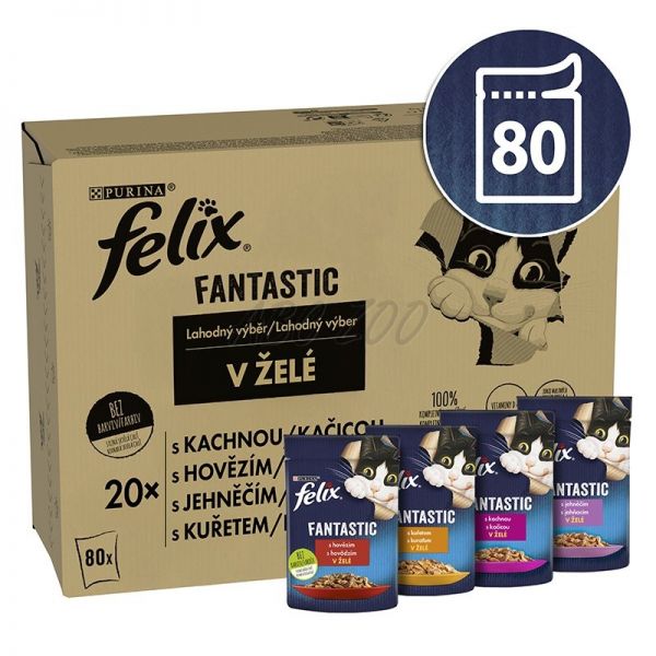 Vrečke FELIX Fantastic Multipack - z govedino, piščancem, raco in jagnjetino v želeju 80 x 85 g