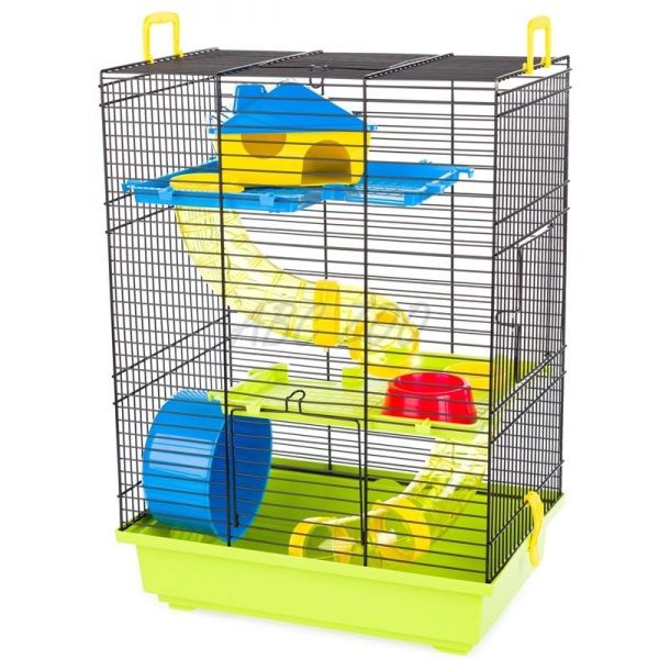 Kletka za hrčke in druge manjše glodavce s tunelom in dodatki. Zelena barva posode. Več podrobnosti