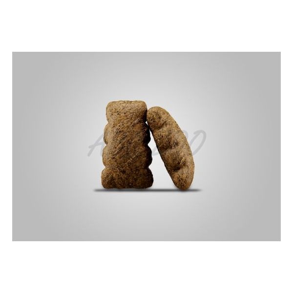 Sestava: posušene perutninske beljakovine (perutninsko meso 24,0 %, račje meso 4,0 %), polnozrnata koruza, riž, perutninska maščoba, pesine vlaknine, hidrolizirane perutninske beljakovine, minerali, mleti koren cikorije (naravni vir inulina)