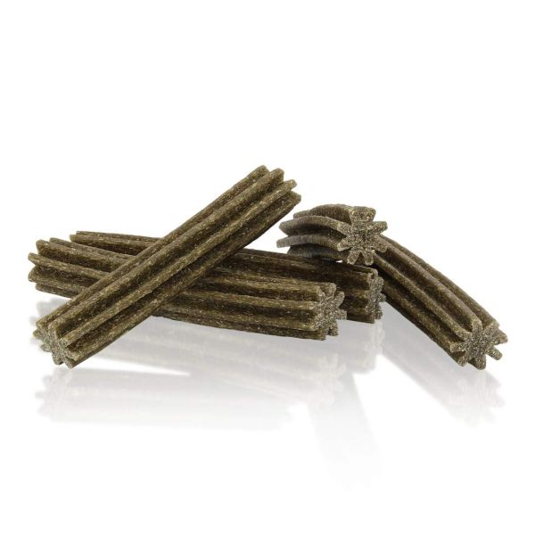 Funkcionalni žvečljivi priboljški, zasnovani za podporo ustnega zdravja in zmanjšanje zobnih oblog. Kombinacija rimske kamilice in žajblja spodbuja naravno ustno higieno, medtem ko nežna tekstura pomaga pri čiščenju zob med žvečenjem. Izjemno okusni, primerni tudi za občutljive pse, brez umetnih barvil in dodanega sladkorja.