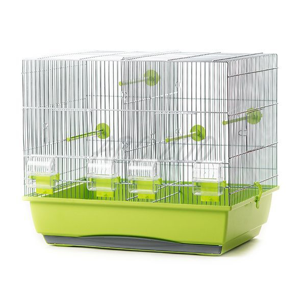 Kletka za ptice z odstranljivo srednjo mrežo. Črna barva posode. Več podrobnosti