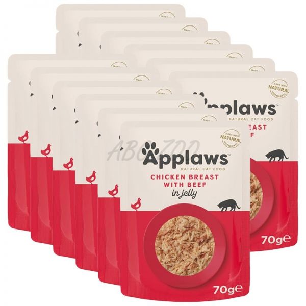 Applaws Vrečka za mačke s piščančjimi prsmi in govedino v želeju 12 x 70 g