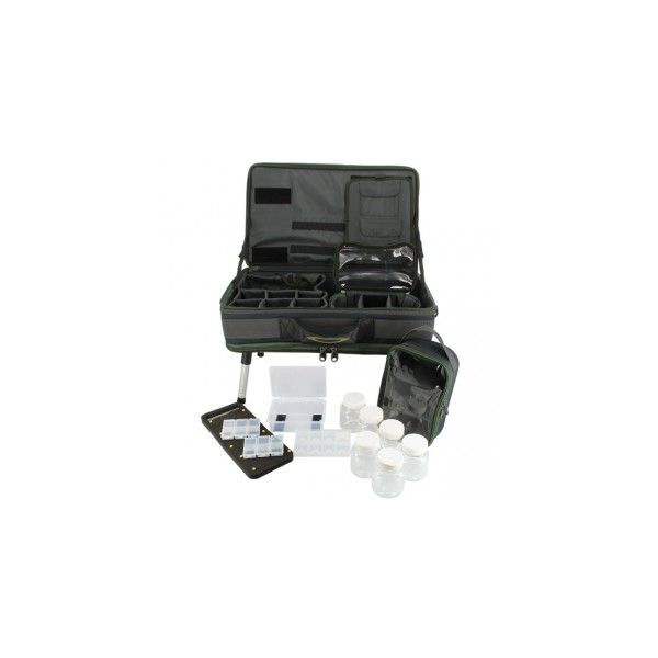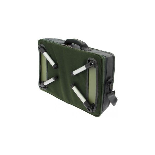 Zelo dovršen in kakovostno izdelan kovček z vgrajeno mizico. Mizico lahko iz kovčka odstranite, s čimer dobite klasično bivvy mizico in ločen kovček za vso potrebno opremo. Robustna izdelava in kakovostne zadrge. Nikoli več vam ne bo treba iskati opreme po celem šotoru – vse je pregledno in na enem mestu. Kovček je bogato oblazinjen, tako v notranjosti kot tudi na ročaju in naramnem pasu. Veliko možnosti za individualno ureditev notranjosti. Idealna izbira za daljše kraparske odprave.
