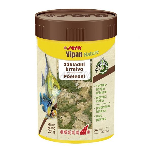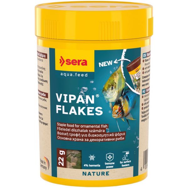 Kompletna hrana v pahuljicah za vse akvarijske ribe, ki se hranijo na površini. Vipan Flakes ponuja uravnoteženo recepturo z naravnimi sestavinami in prebiotiki, ki podpirajo zdrav rast, močan razvoj in vitalnost rib. Pahuljice dolgo ohranjajo svojo obliko in ne onesnažujejo vode, kar jih naredi idealne tudi za družbena akvarija.