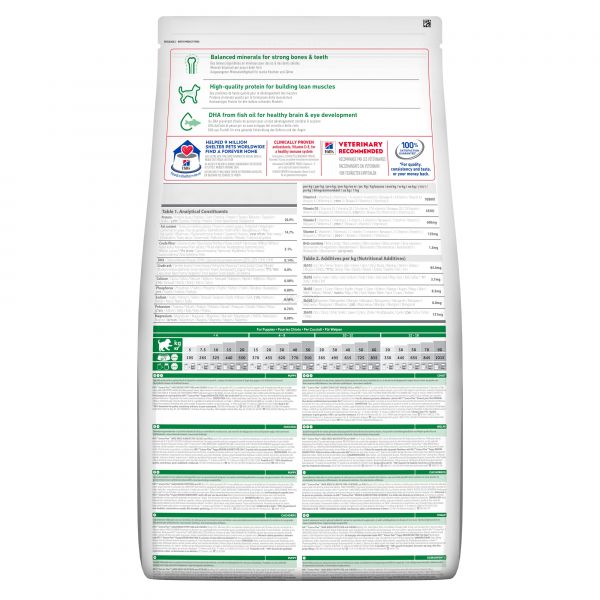 Veliki psi potrebujejo veliko ljubezni. Hrana HILL'S SCIENCE PLAN Large Breed Puppy zagotavlja optimalen delež kalcija za nadzorovano rast kosti, kar je bistvenega pomena pri mladičih velikih pasem. Ponudite svojemu psičku odličen začetek s hrano, ki vsebuje minerale za močne kosti in zobe. Hrana vsebuje DHA iz ribjega olja, ki skrbi za razvoj možganov in vida, ter visoko kakovostne beljakovine za razvoj in ohranjanje mišic.