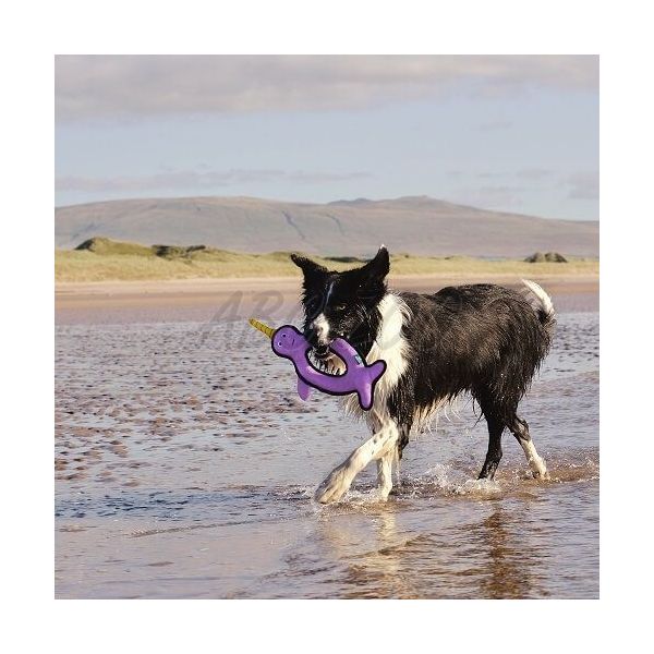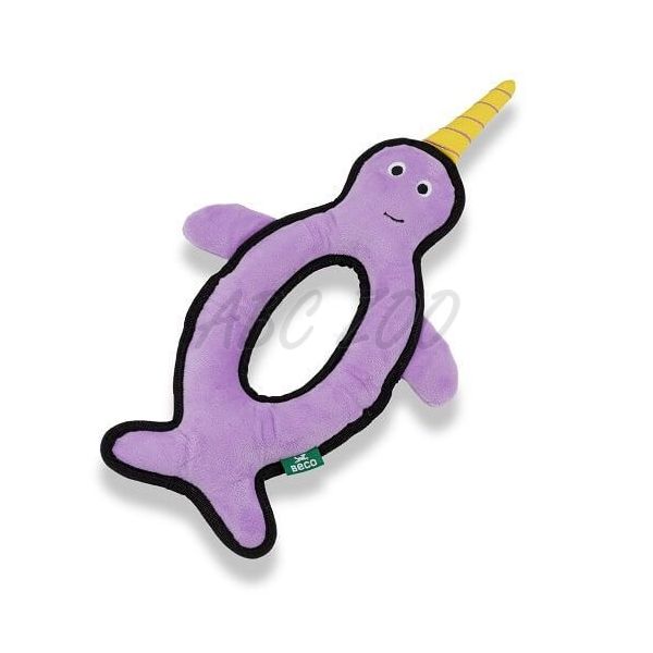 Igrača za pse Beco Rough and Tough - Narval je robustna in trpežna igrača, ki med igro vzdrži žvečenje in borbo. Izdelana iz recikliranih materialov, ponovno uporablja že obstoječe, daje odpadkom drugo življenje in spodbuja njihovo zbiranje in ponovno uporabo. Ima interaktivni piskalnik - piskalo.