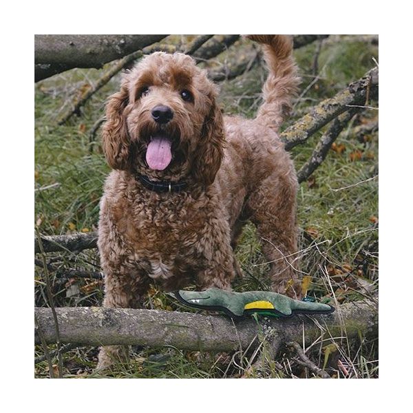 Igrača za pse Beco Rough and Tough - Krokodil je robustna in trpežna igrača, ki med igro vzdrži žvečenje in borbo. Izdelana iz recikliranih materialov, ponovno uporablja že obstoječe, daje odpadkom drugo življenje in spodbuja njihovo zbiranje in ponovno uporabo. Ima interaktivni piskalnik - piskalo.