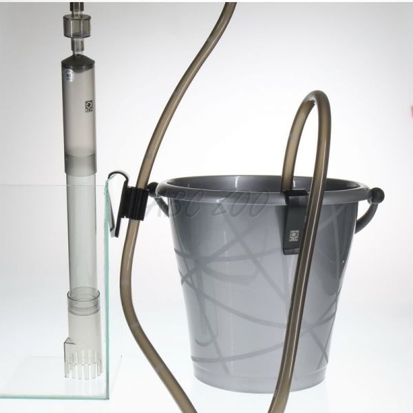 Uporaba: Čistilec gramoza držite pod vodo v akvariju, ga stresajte gor in dol ter držite konec cevi v vedru. Voda se bo nato stekala v vedro. S čistilom za gramoz očistite dno. Za zaključek preprosto odstranite čistilec gramoza iz vode ali/in zaprite zaporno pipo na koncu cevi.
