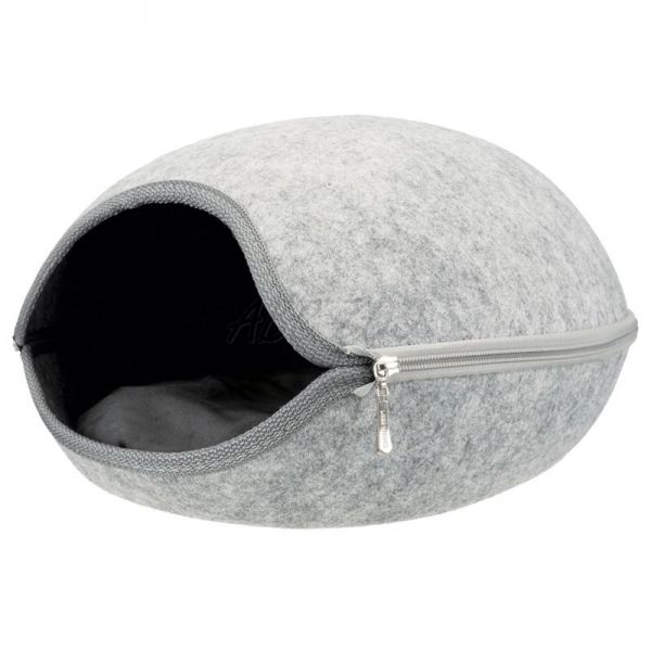 Mačje zavetje iz klobučevine z zadrgo. Več podrobnosti